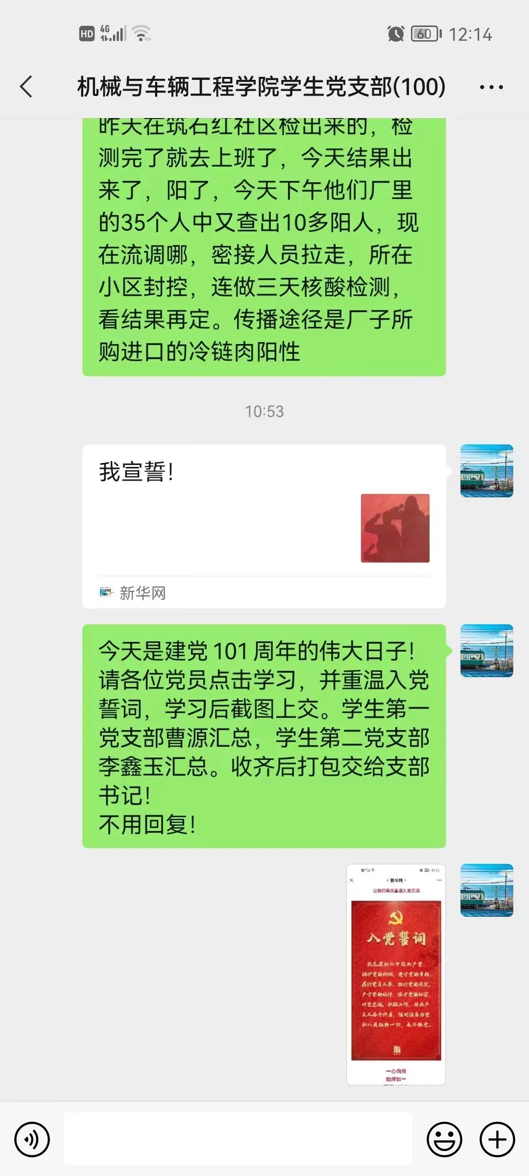 yl6809永利集团学生党支部在支部书记的带领下,以线上学习的形式重温入党誓词,全体学生党员回首革命故事,联系自身学习工作实际,发表对党的祝愿以及对未来的畅想。同志们积极主动的发表重温入党誓词的感言:牢记入党初心,坚定理想信念,弘扬伟大建党精神以更加饱满的热情、鼓足干劲投身到社会主义建设中。