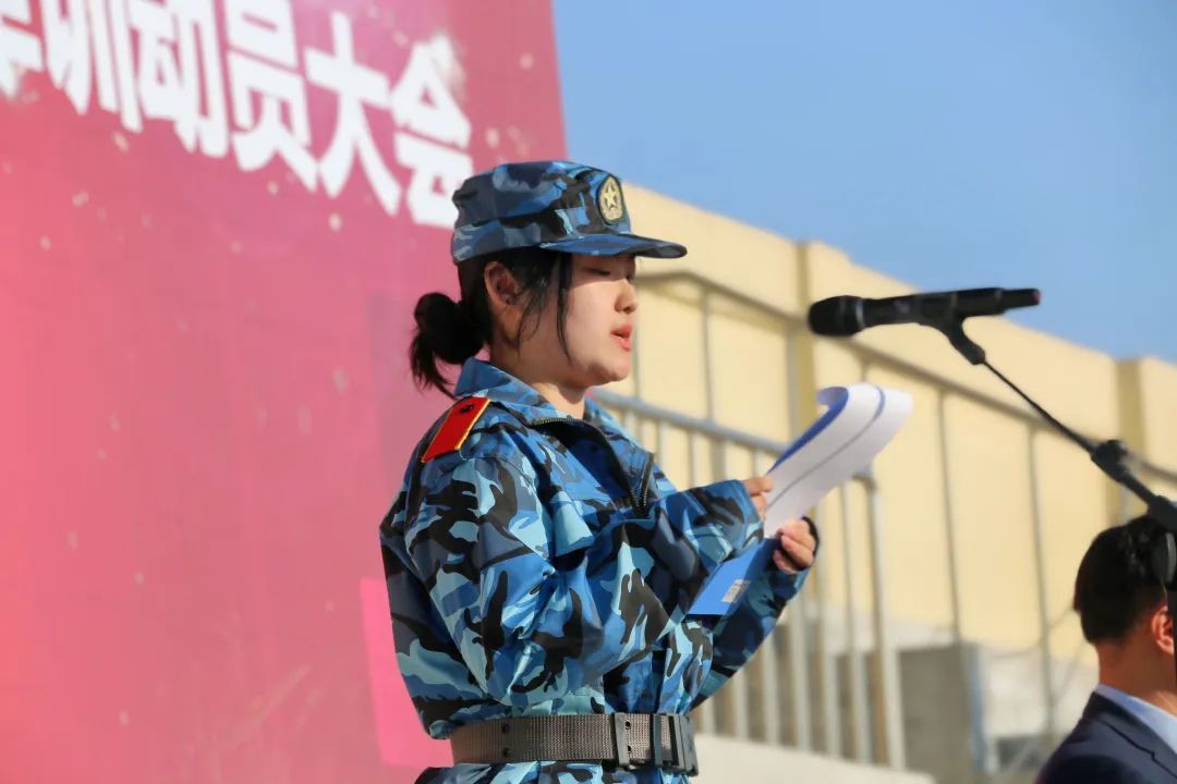 新生代表2022级全体参训同学作了四点承诺:一要尊重教官,尊重师长,服从命令,听从指挥;二要严格要求,严格训练,努力完成规定的训练任务;三要团结同学,互帮互助,发扬集体主义精神;四要吃苦耐劳、拼搏向上,磨练坚强意志,锻炼过硬体质。