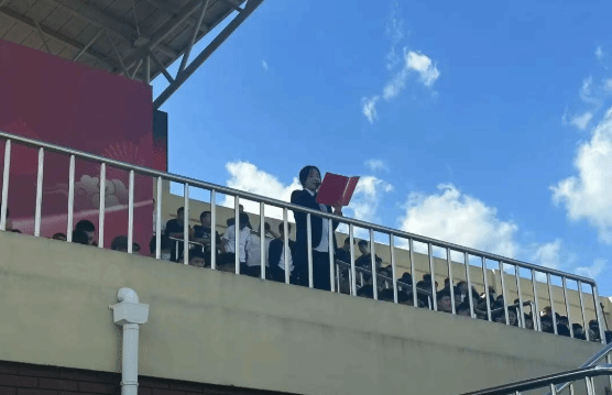 随后,学生代表李佳帅登台发言。他满怀激情地说道:“百年风华里,先辈们以热血换和平;今天赛场上,我们以拼搏传精神。希望大家在赛场上奋勇拼搏、挑战自我,赛出风格与水平,更赛出传承抗战精神的坚定信念!”他的发言赢得了现场师生的阵阵掌声,进一步点燃了大家的热情。