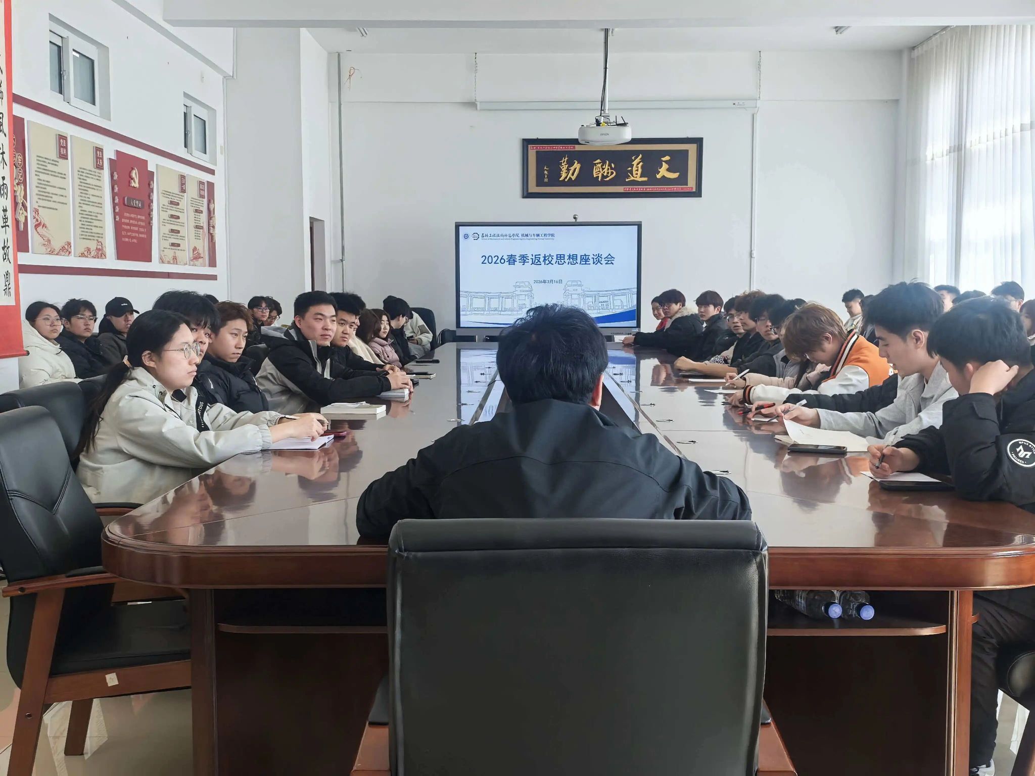 3月16日,为精准研判学生学习生活所需,解决实际问题,帮助青年学子更好适应校园生活,yl6809永利集团于机械楼405开展2026年春季学期返校思想动态座谈会。学院团委书记许奇及各班学生代表参会,围绕学子思想动态与成长需求展开交流,会议为新学期思政工作谋篇布局、夯实根基。