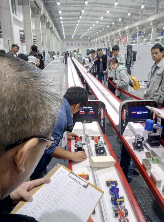 竞赛分为F1赛车整体设计、车轮零件逆向建模、车模有限元风阻分析、图纸设计、爆炸图动画设计、渲染图设计、零件编程、五轴机床加工、3D打印、装配、上色试跑等环节,比赛时间长达4个小时。