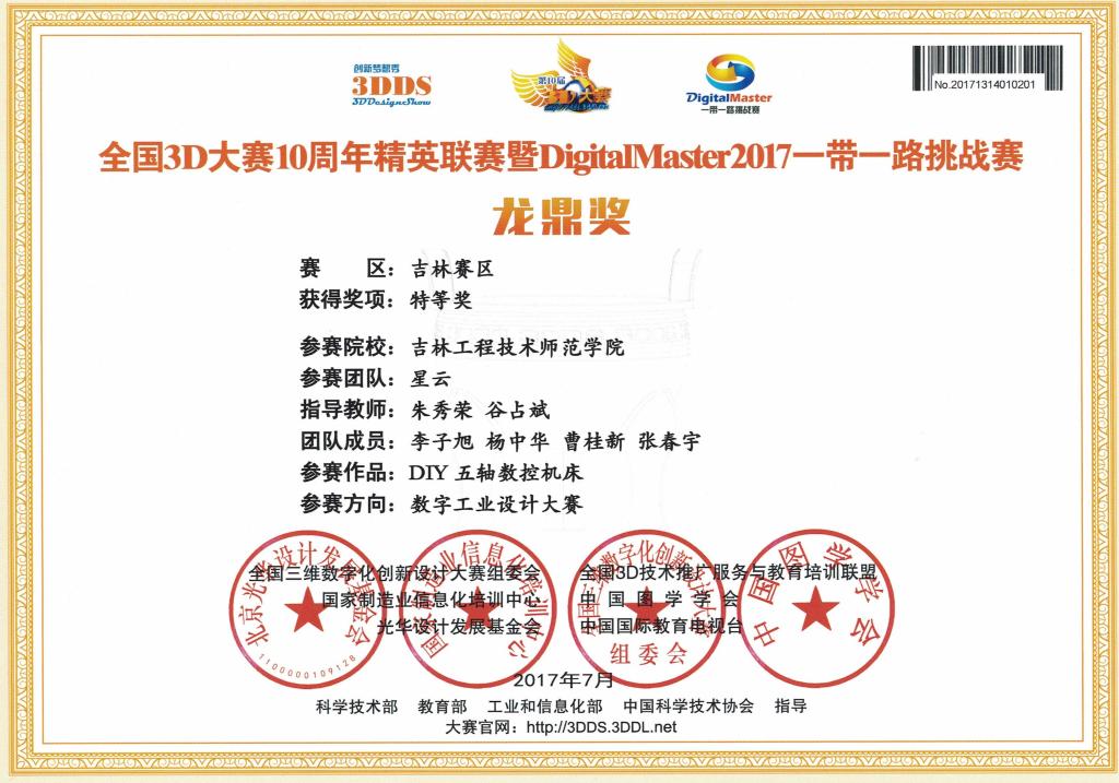 机械工程学院师生在大赛中表现突出,共有11支队伍参赛,其中分别由朱秀荣教授指导的李子旭等同学的“DIY五轴数控机床”和陈英博士指导的林涵等同学的“互联网智能搜救机器人”获得省级特等奖,由孙艳红、胡虹、田梅、王洪芬、王鹏、张卫东、谷占斌等教师指导的参赛项目获得省级二等奖7项、三等奖2项的好成绩。