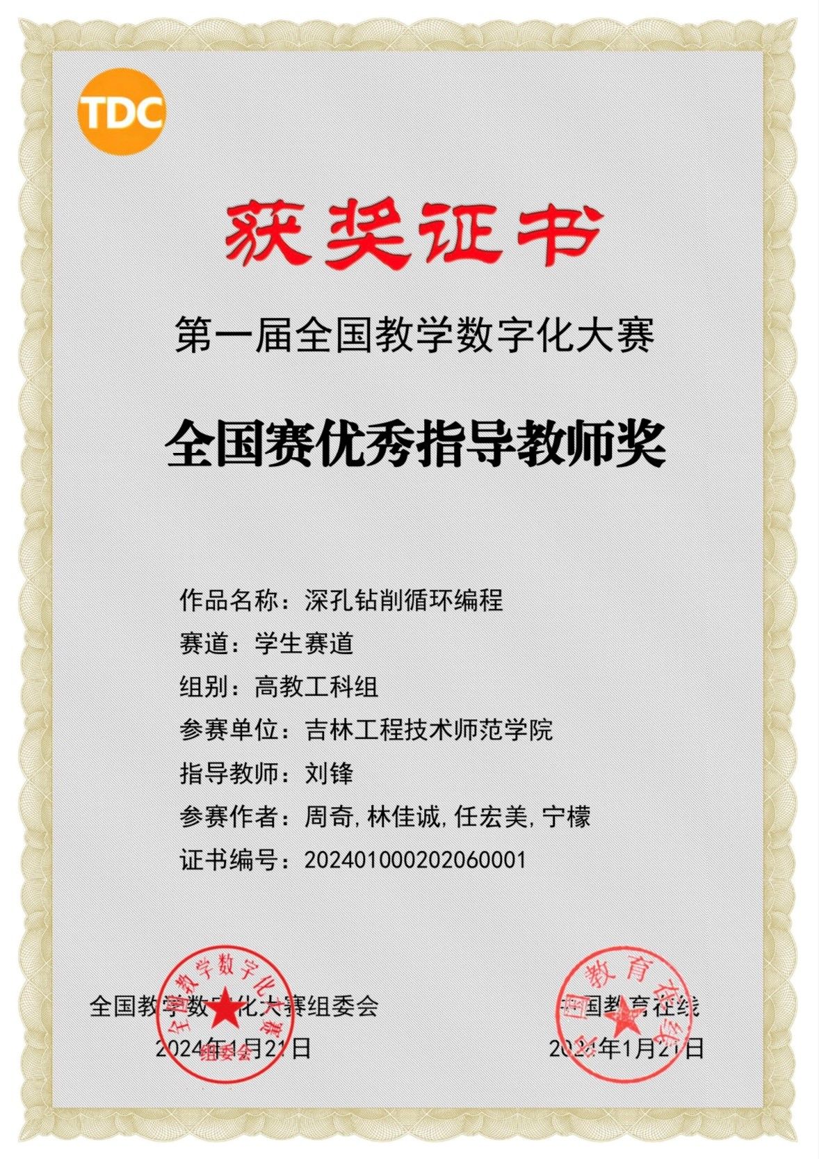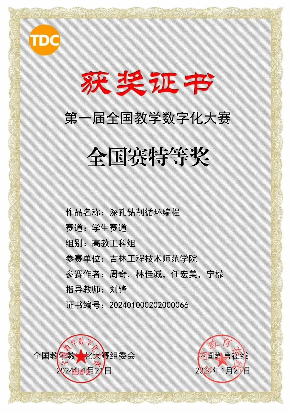 近日,备受瞩目的2024年首届全国第一届教学数字化大赛圆满落幕,本次比赛吸引了来自全国30个省、市、自治区及澳门特别行政区,甚至英国等地的341所院校,总计2627位选手报名参赛,提交作品达827个。在激烈的竞争中,yl6809永利集团学生团队凭借出色的作品《深孔钻削循环编程》斩获特等奖,指导教师刘锋荣获优秀指导教师殊荣。这一佳绩不仅展现了yl6809永利集团在教育数字化领域的卓越实力,也为学校赢得了荣誉。