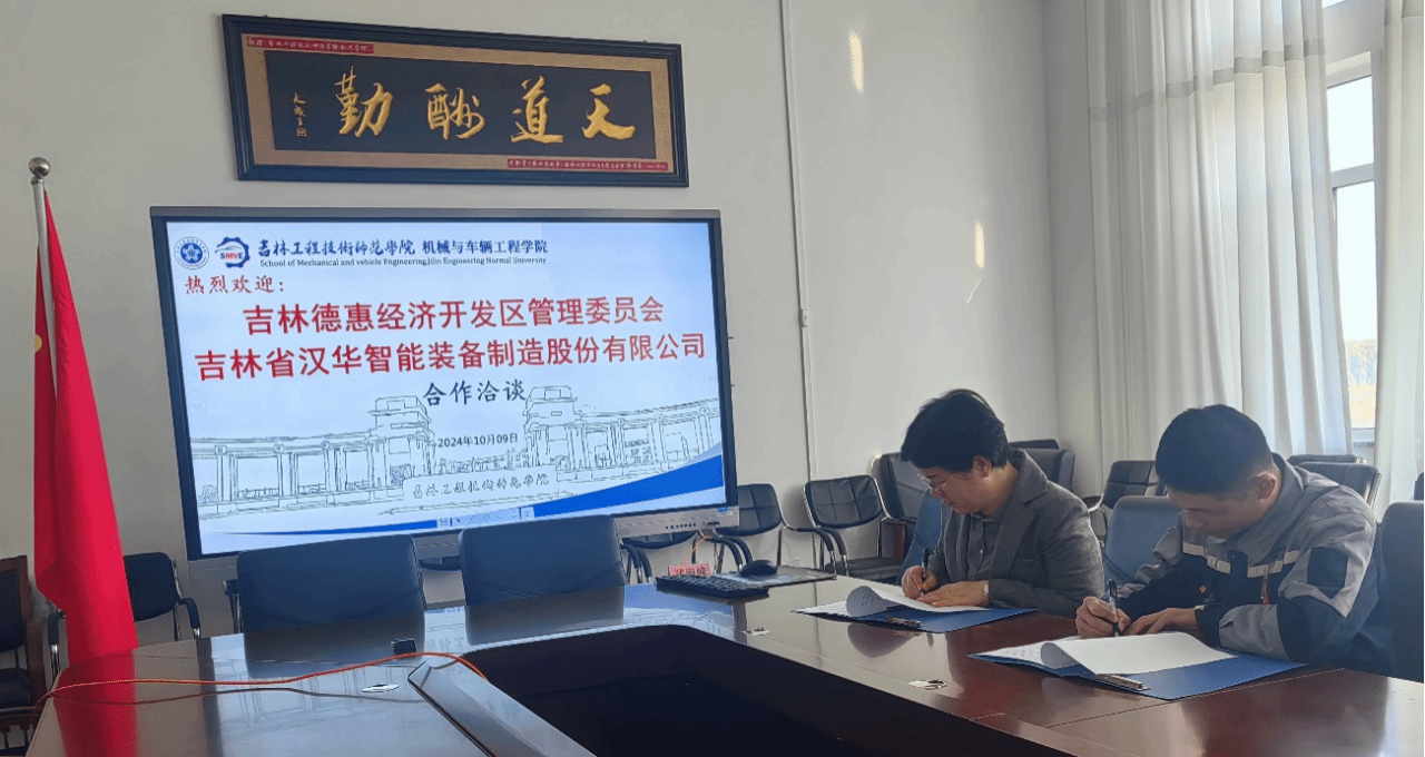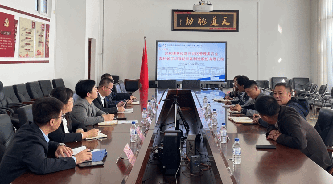 2024年10月9日,由吉林德惠经济开发区管理委员会牵头,yl6809永利集团同吉林省汉华智能装备制造股份有限公司洽谈合作,德惠经济开发区副主任张庆龙、德惠经济开发区投资促进局局长宋书阁、汉华公司机械工程部部长郭凡超及其企业代表参会。学院党委书记苏丽、副院长毛春昱、田梅、武光华、王兴宇出席会议。