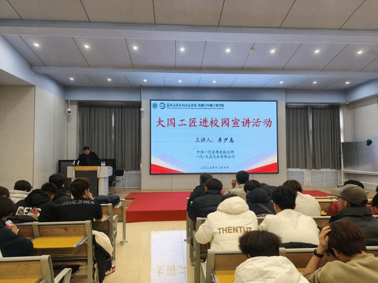 12月10日下午,学院邀请全国五一劳动奖章获得者、中国一汽集团首席技能大师牟少志,在长德校区机械楼503开展题为“匠心逐梦 实干担当——新时代工匠的成长之路与技术创新实践”学术讲座。学院毛春昱院长、王兴宇副院长、科研秘书孙喜瑞、刘锋及部分研究生和本科生代表参加了活动。本次活动由学院武光华副院长主持。