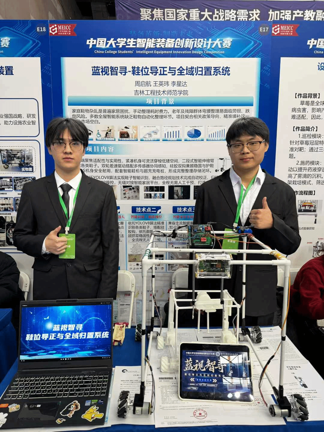 本次获奖项目《蓝视智寻鞋位导正与全域归置系统》由刘强老师和李志鹏老师担任指导,路演成员来自智享车界学生社团。决赛现场,在带队教师刘强老师的悉心指导下,团队以扎实的专业功底、清晰的逻辑表达和出色的系统演示赢得了评委专家的一致好评。