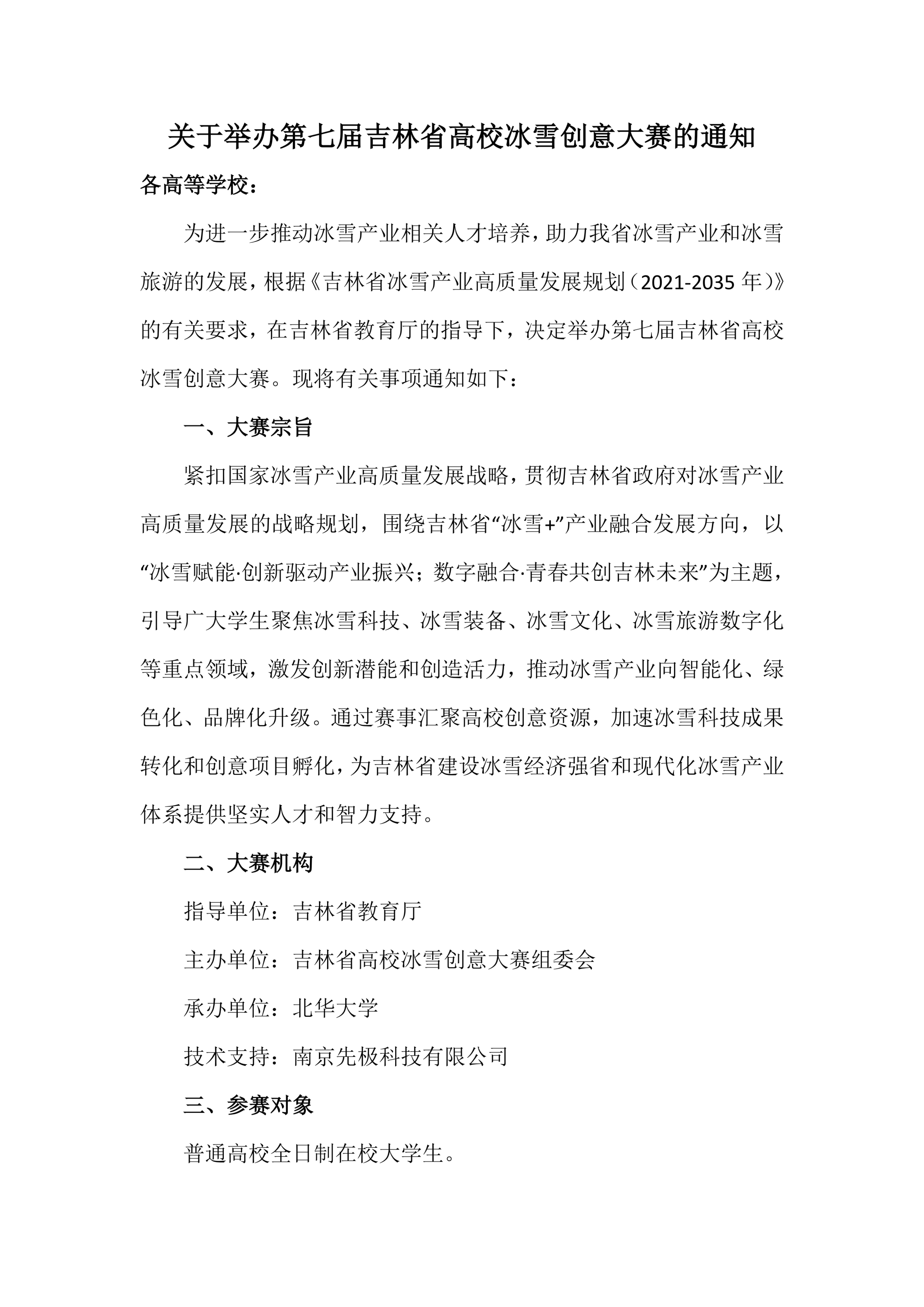 转发《关于举办第七届吉林省高校冰雪创意大赛的通知》的通知