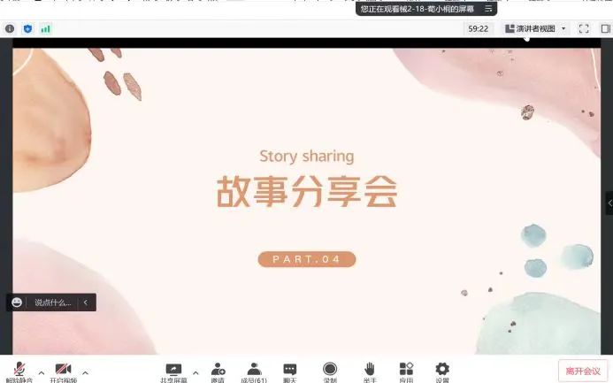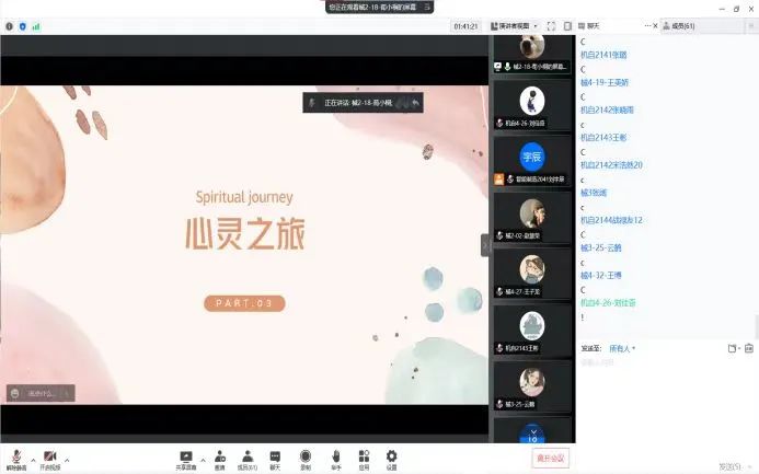 第四环节为“故事分享会”,在轻松嬉戏的氛围下又不失人生哲理的身影,同学们心理的担子也在此刻化为泡影,多了丝慰藉与坦然。