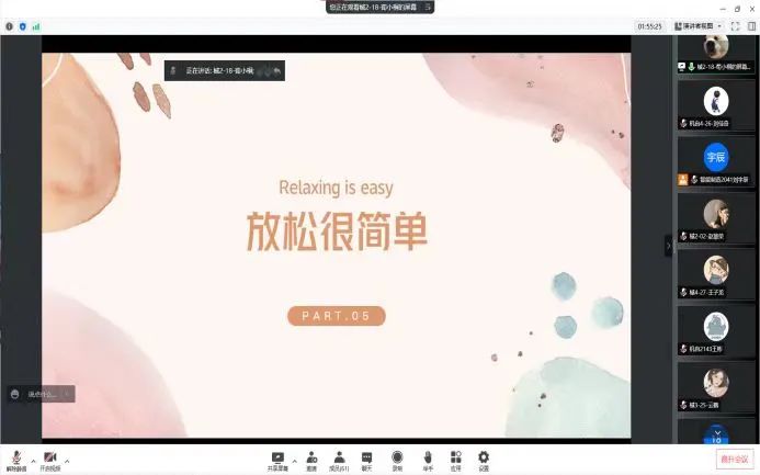 活动最后,进入到“放松很简单”环节,主持人带领大家一起采用呼吸调节法缓解心理,并鼓励大家采用与肌肉调节法相结合的方式舒缓平日的压力与烦恼。
