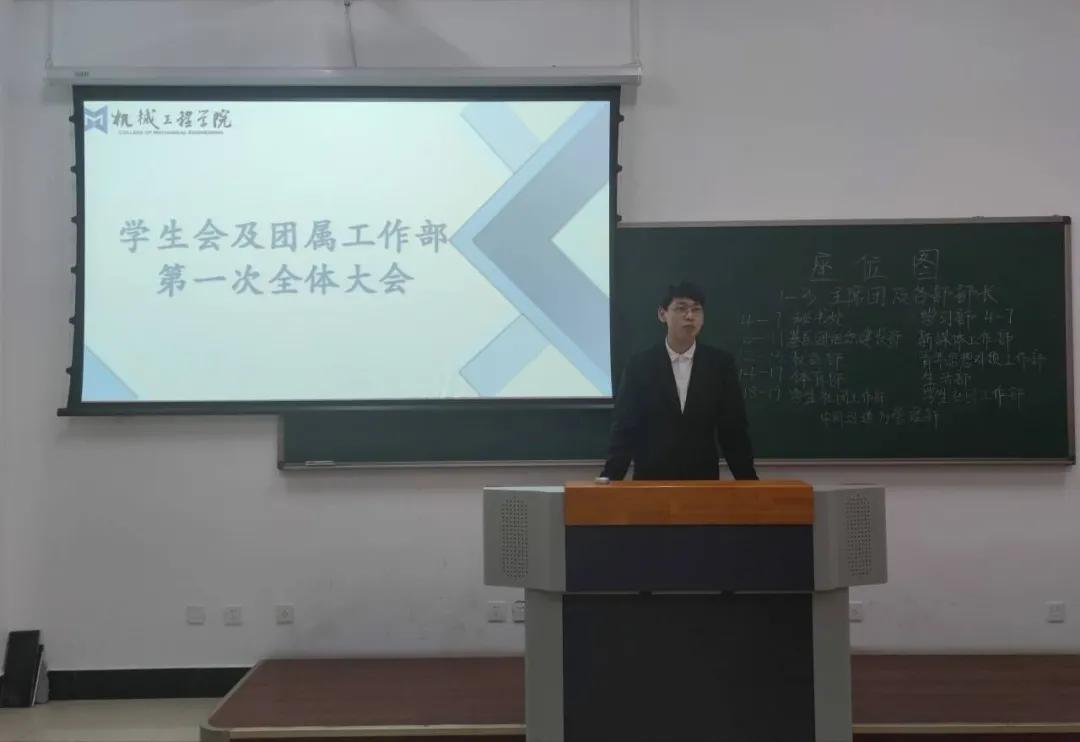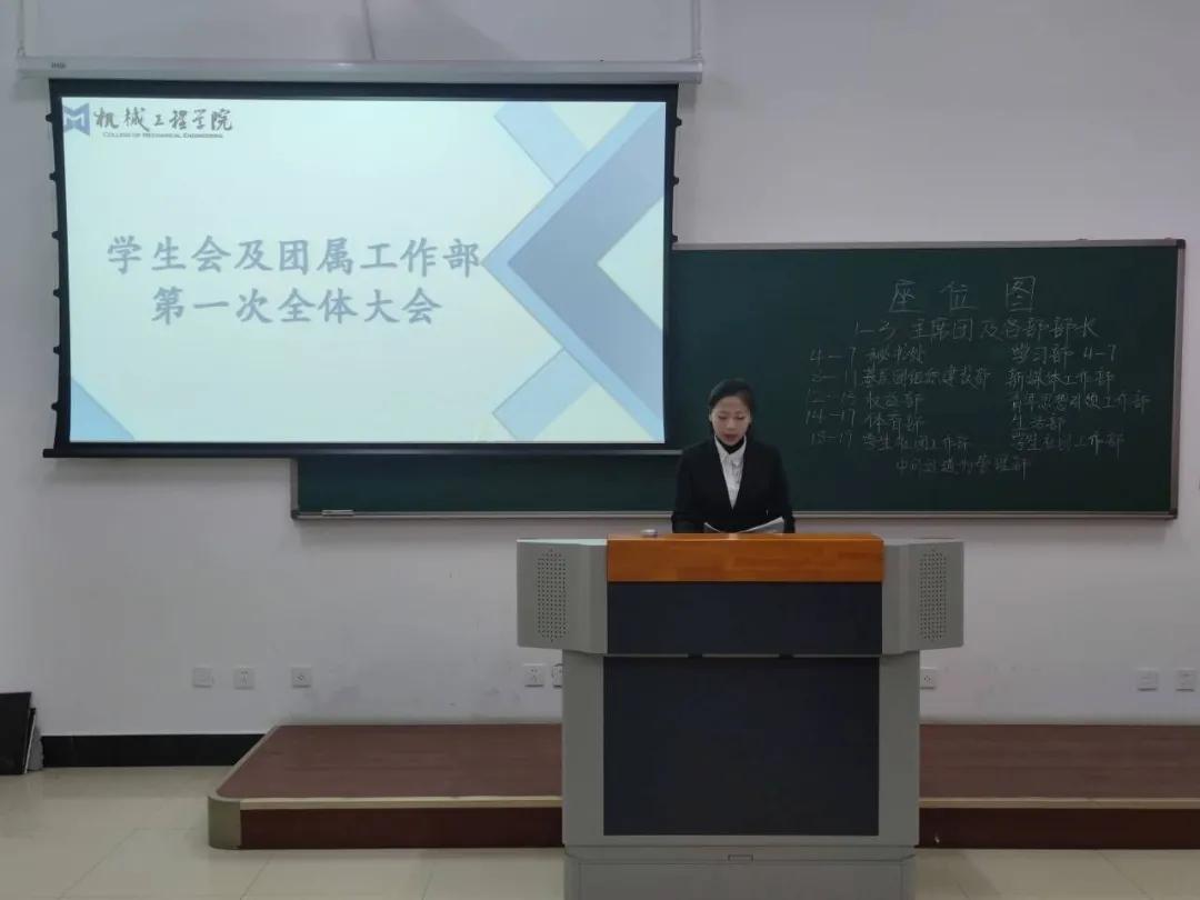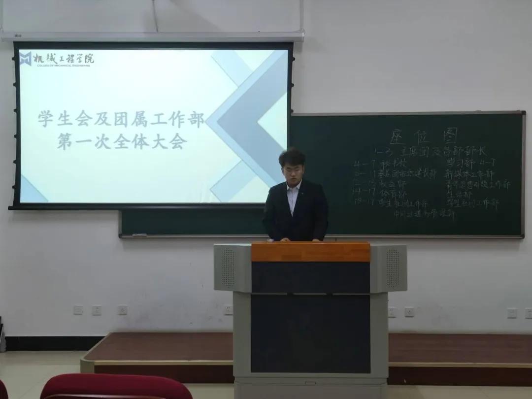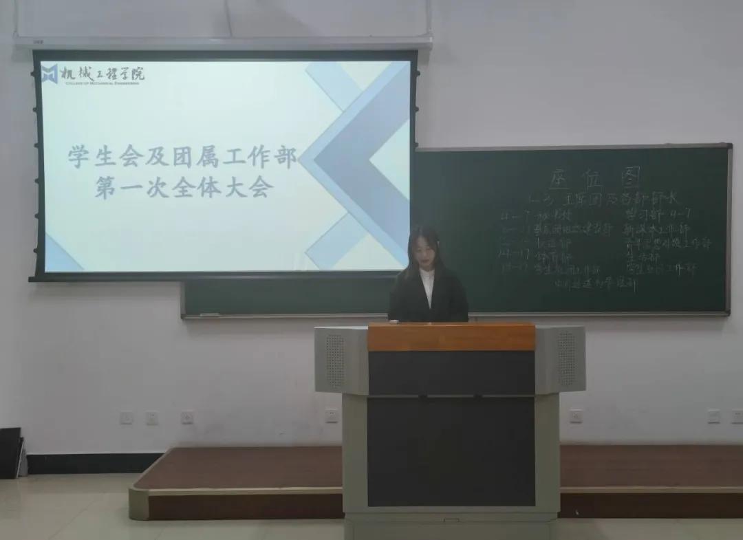 随着会议接近尾声,各部部长依次上台介绍各部门基本职责并提出希望和要求。在今后的工作中不断提升个人能力,展现个人风采,做有能力、有魄力、有责任心的学生干部。