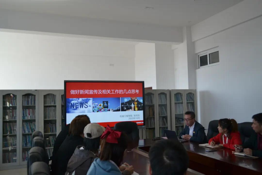 10月14日,机械工程学院在机械食品楼405室召开新闻宣传工作专题培训会。机械工程学院党总支书记张玮东作题为《做好新闻宣传及相关工作的几点思考》的讲座,学生会及团属工作学生干部参加培训,培训会由分团委书记赵晶媛主持。