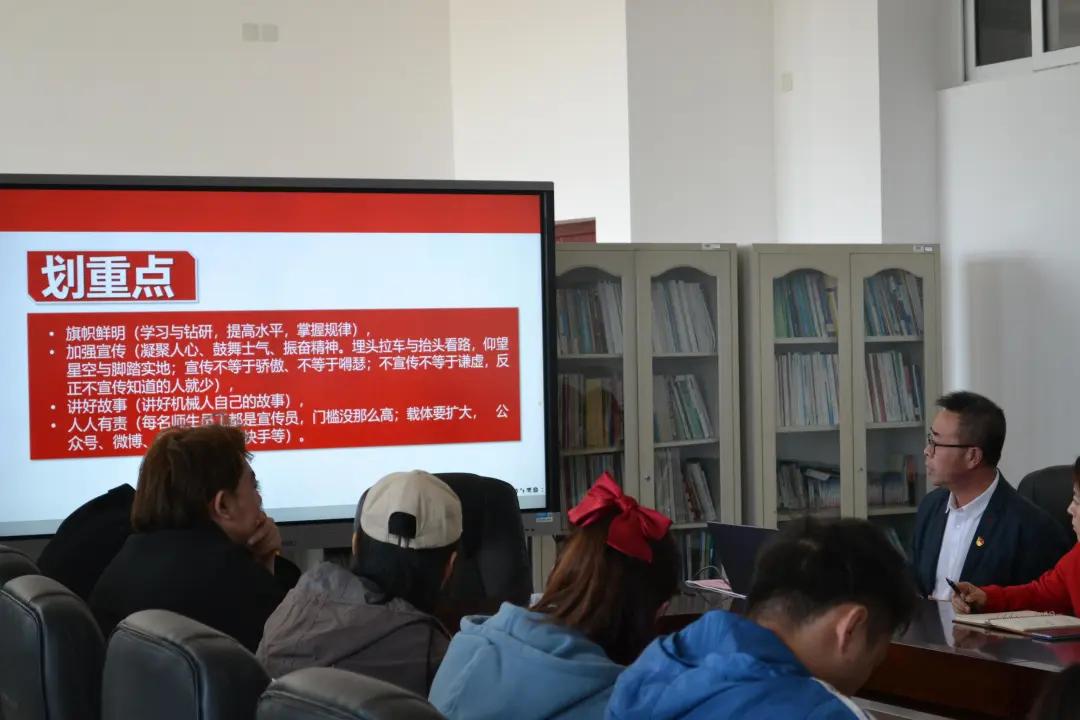会上,张玮东从新闻宣传的工作依据、宣传报道的体裁、微信公众号、短视频等几个方面讲述了基础知识和具体运用,强调在工作中要发挥新闻宣传“举旗帜、聚民心、育新人、兴文化、展形象”的作用,牢牢把握正确舆论导向,加强传播手段和话语方式创新,坚持讲好中国故事,传播中国好声音,讲好“工师人”“机械人”自己的故事。