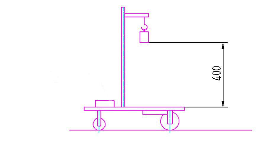 设计一种小车,驱动其行走及转向的能量是根据能量转换原理,由给定重力势能转换而得到的。该给定重力势能由竞赛时统一使用质量为1Kg的标准砝码(¢50×65 mm,碳钢制作)来获得,要求砝码的可下降高度为400±2mm。标准砝码始终由小车承载,不允许从小车上掉落。图1为小车示意图。