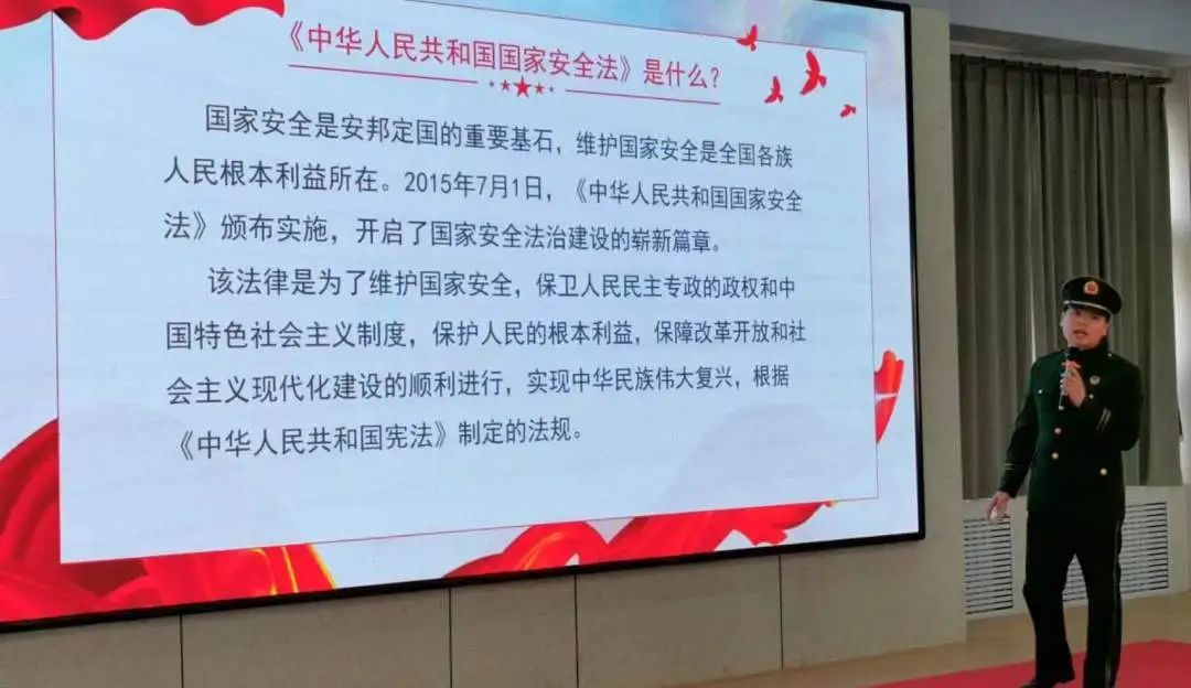 同时他也讲解了“增强全民的国家安全意识需要普及国家安全观、增强全民国家安全意识和素养、提高全民国家安全行为自觉;全民国家安全意识较为薄弱是我国经济社会发展所面临的潜在挑战,亟待全面加强全民国家安全意识,普及国家安全观。”并对如何增强全民的国家安全意识进行建议。
