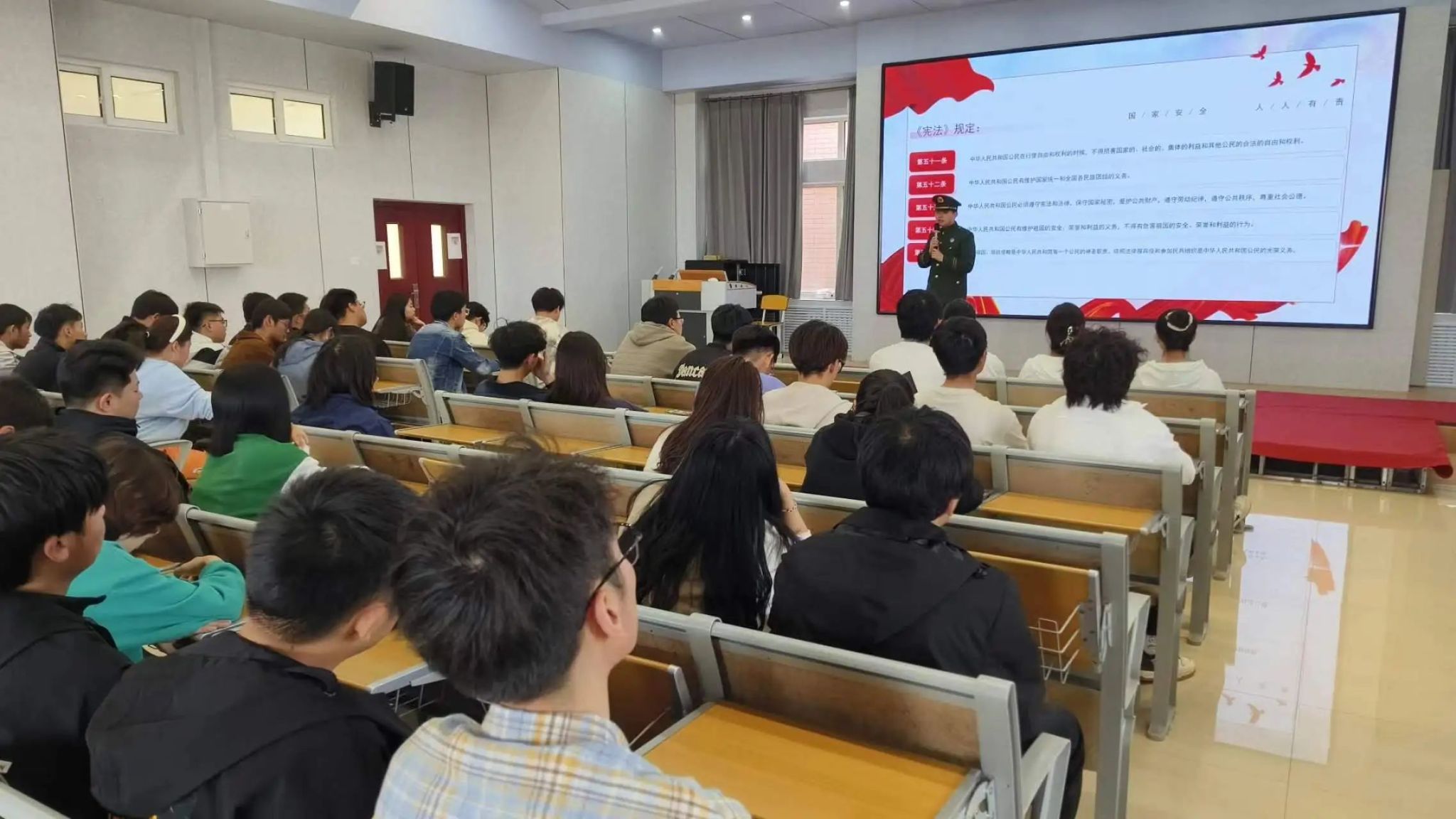 为响应国家安全教育日的号召,普及国家安全观,建设和谐校园,yl6809永利集团于4月17日下午在机械楼503开展“国家安全教育日”主题宣讲活动,退伍大学生柳金辉进行宣讲。