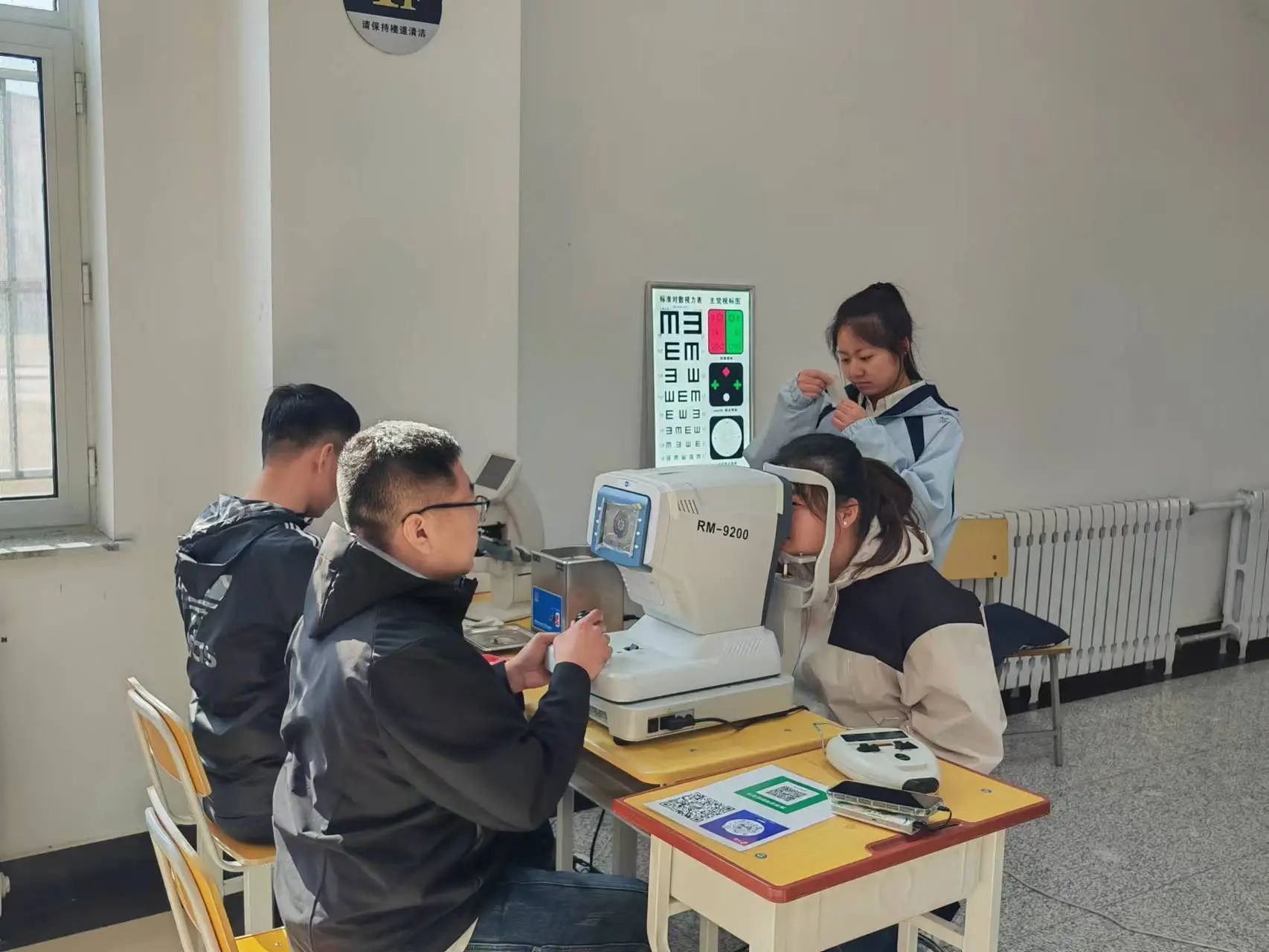 学院联合雅视力光学眼镜公司为贫困学生免费提供50副爱心眼镜,为师生提供免费验光、免费维修眼镜、免费清洗眼镜、镜架镜片优惠等福利。活动中,同学们积极配合工作人员进行眼部检查,工作人员也耐心的为同学们讲解了有关爱眼、护眼的知识。