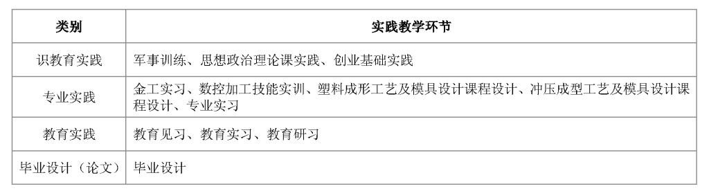 “四个三”的模具设计与制造方向职教师资人才培养特色,具体表现为:“三突出”: 突出实践技能训练+突出教师职业技能训练+突出创新能力培养;“三证书”:学历学位证书+教师资格证书+若干职业技能等级证书;“三导师”:专业导师+中职导师+产业导师;“三基地”:校内实践基地+校外专业实践基地+校外教育实践基地。