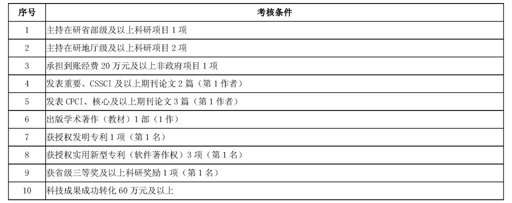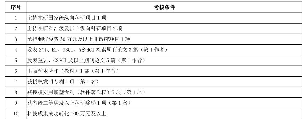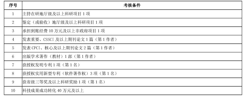 三年考核周期内,累计到账科研项目经费30万元以上(含非政府项目),并满足表4所列条件之二: